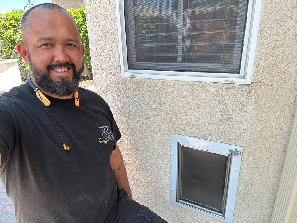 Need doggy door installation in North San Diego County, CA? Call Rapid Repair Handyman today at 760-388-7654 for fast, professional service you can trust. Your pet will also love it!Â