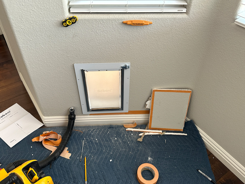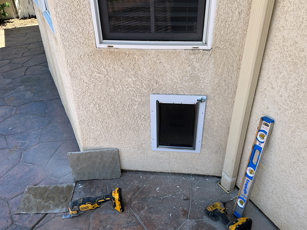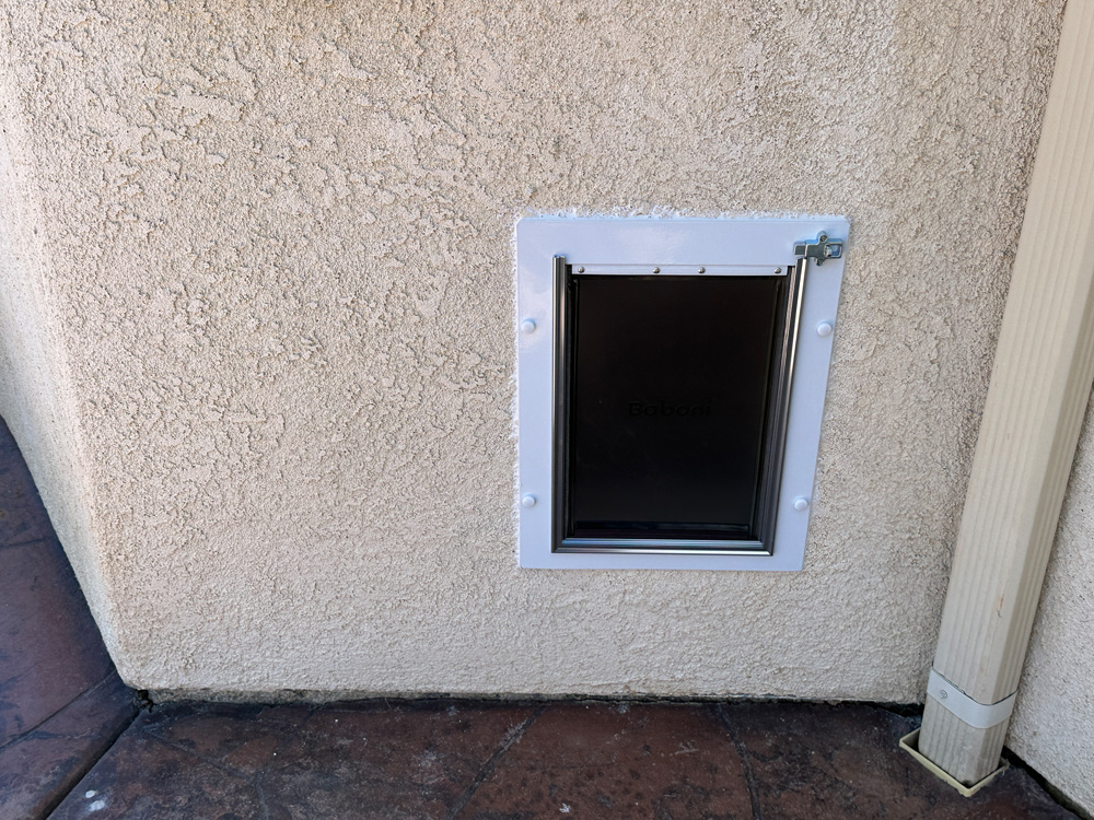 With everything in place, I step back and watch as their pet goes in and out the door curiously. The homeowner thanks me, and I know another happy customer has been made in Carlsbad. Job well done!
